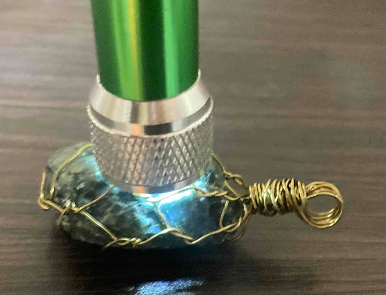 今回、紹介する製品は、空海が修行中肌身離さなかったと伝わる「阿波翡翠」を「同行二人石(阿波翡翠)ワイヤーペンダント」に仕上げてみました。