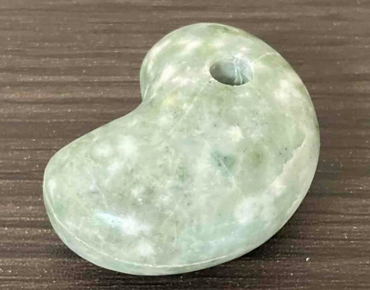 今回、紹介する原石は絶品の美しい天然「翡翠勾玉」です。もっこり型のビーンズ風ですが、珍しいオーブが宿る勾玉です。勾玉作家「翡翠屋伝次郎」が、丹精をこめ製作しました。
