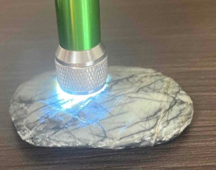 今回紹介する原石は糸巻き翡翠です。翡翠の中でも非常に珍しく希少な原石で中々見つけるのは難しいと思われる。特に太い糸巻きは更に珍しい原石です。