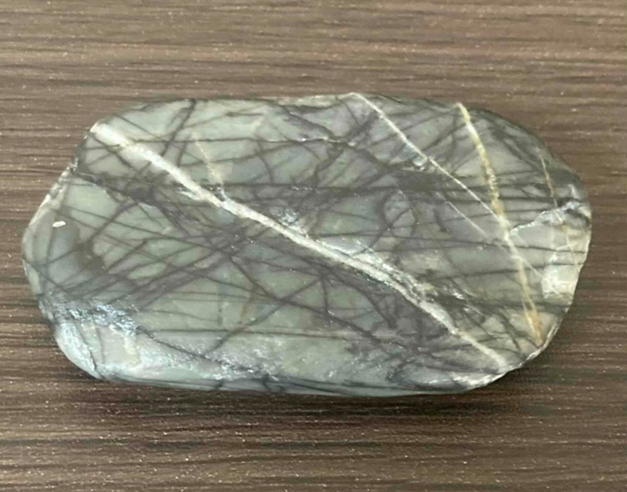 超特価!製品加工用素材・鑑賞用・灰系の糸巻き翡翠の美しい原石!(阿波翡翠研究所)