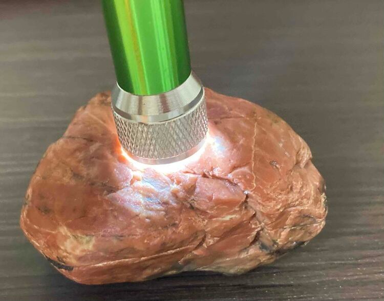 ※写真では、赤い色が薄く写っていますが、現物は、もっと赤い原石となります。真っ赤な原石は、数少ない希少な原石となります。