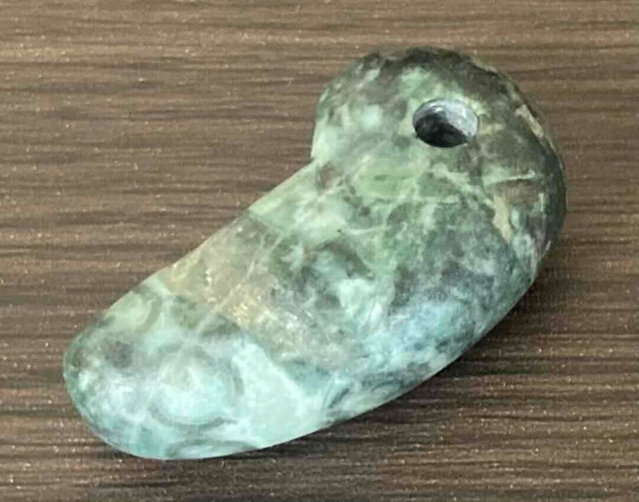 ※写真では、カラーが薄く写っていますが、現品のカラーは緑が濃い美しい勾玉です。
