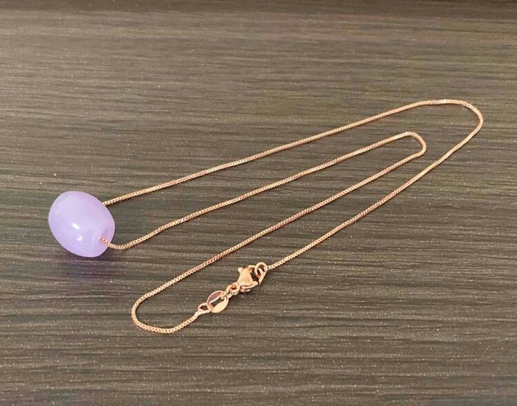 中国で超人気のネックレスをインスパイアし、阿波翡翠のラベンダー原石を丁寧にハンドメイド加工しました。阿波翡翠は、中国で扱う翡翠原石より少し硬いのが特長です。