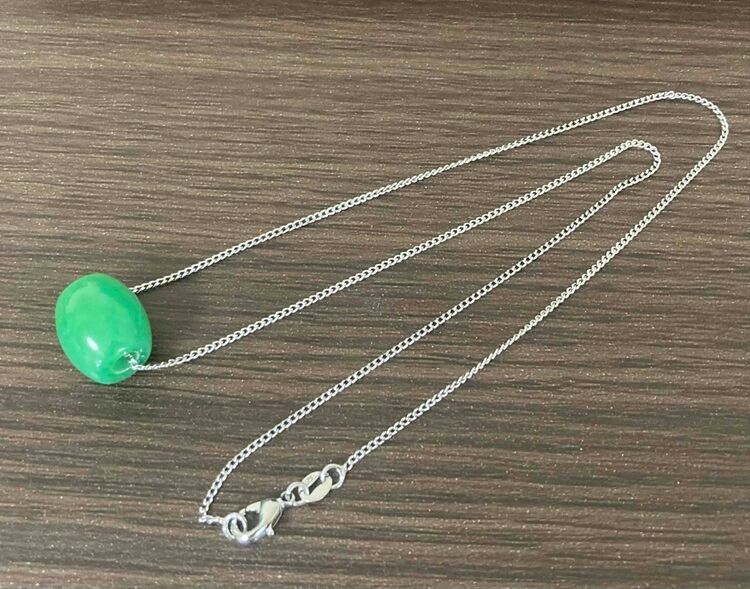 淡い緑色がやさしく輝く、希少な阿波翡翠を使用したネックレスです。グリーン翡翠は心を落ち着け、安らぎをもたらすと伝えられており、古来より特別な石として大切にされてきました。