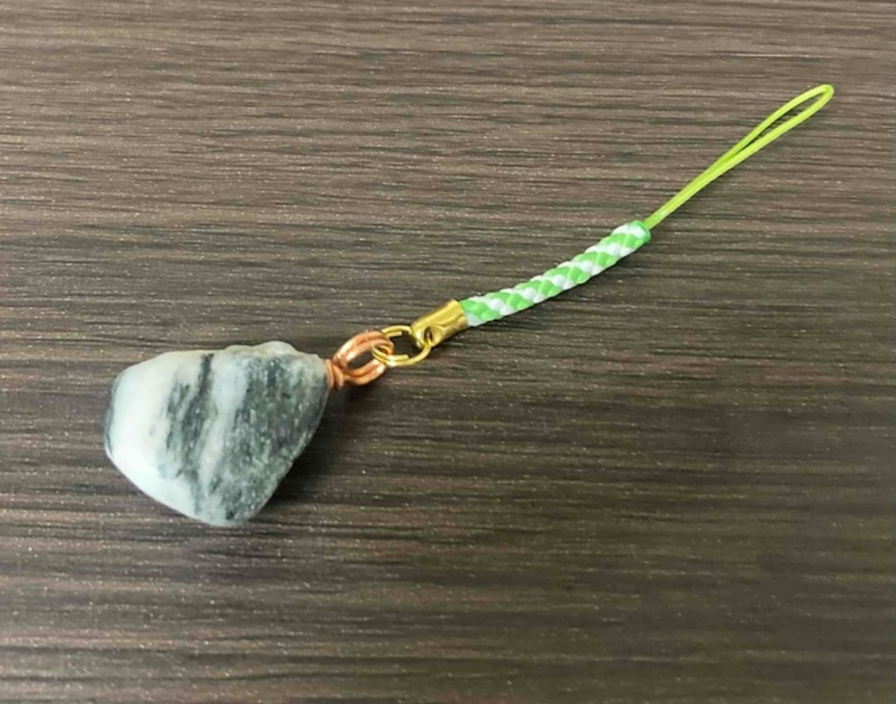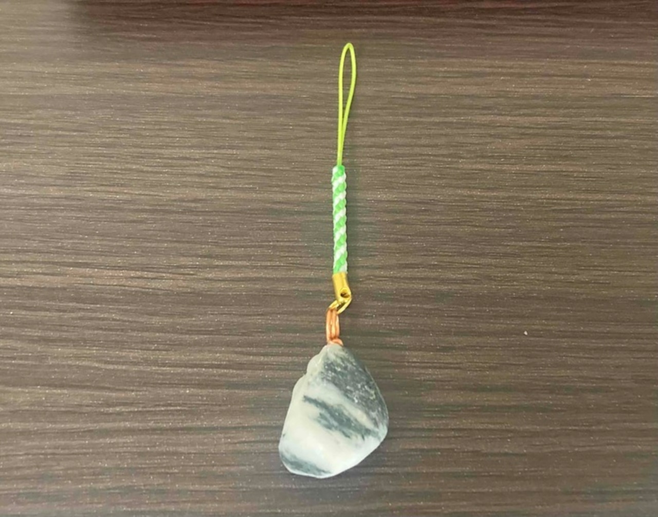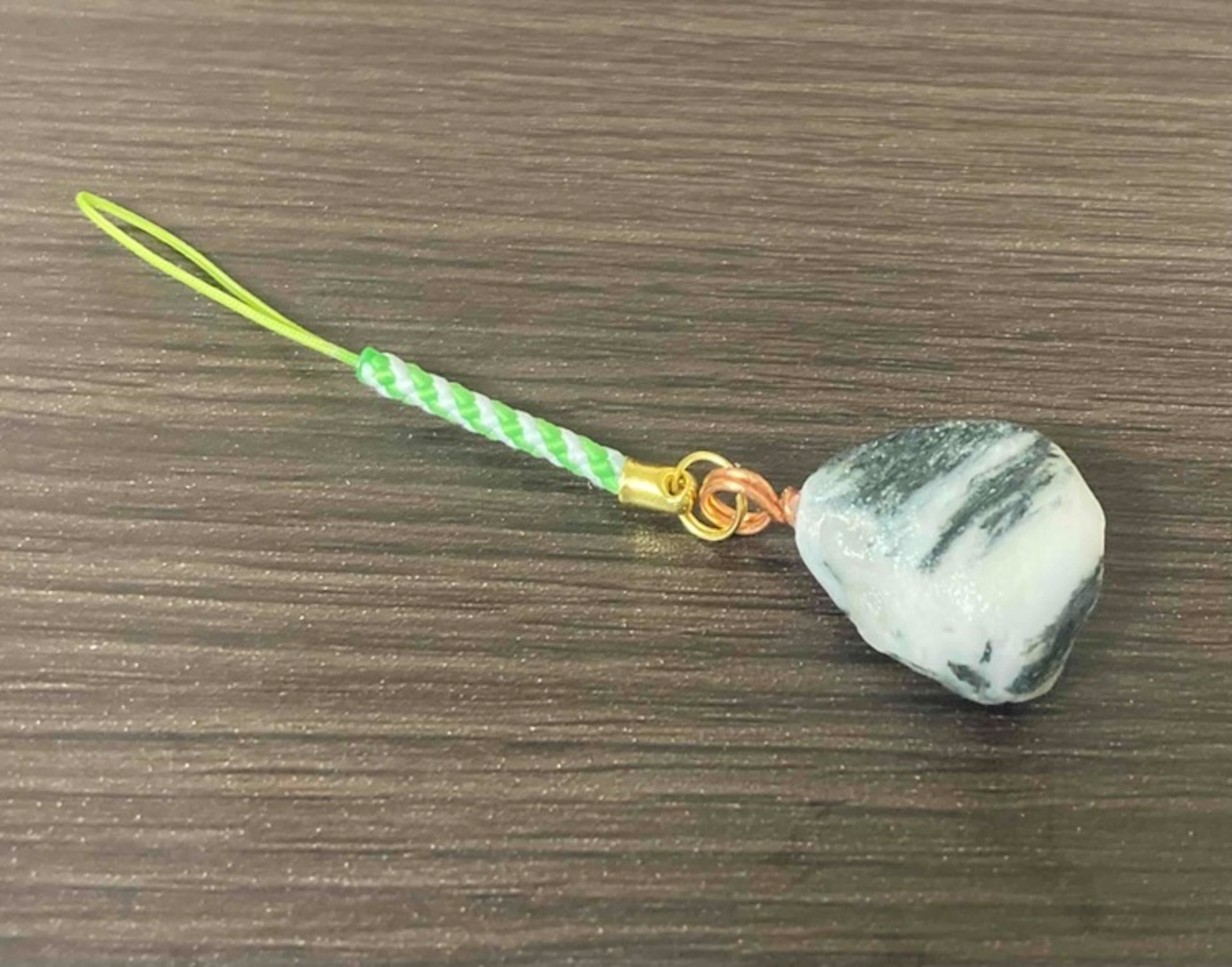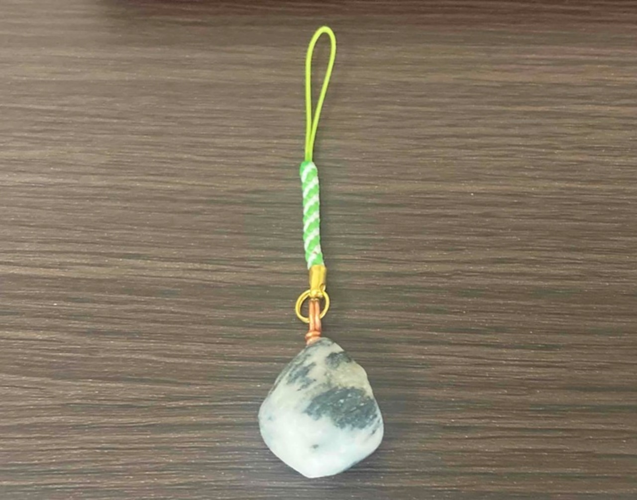 空海翡翠の根付け「同行二人石」緑・白色系原石・空海とともに歩む心の旅のお守り!