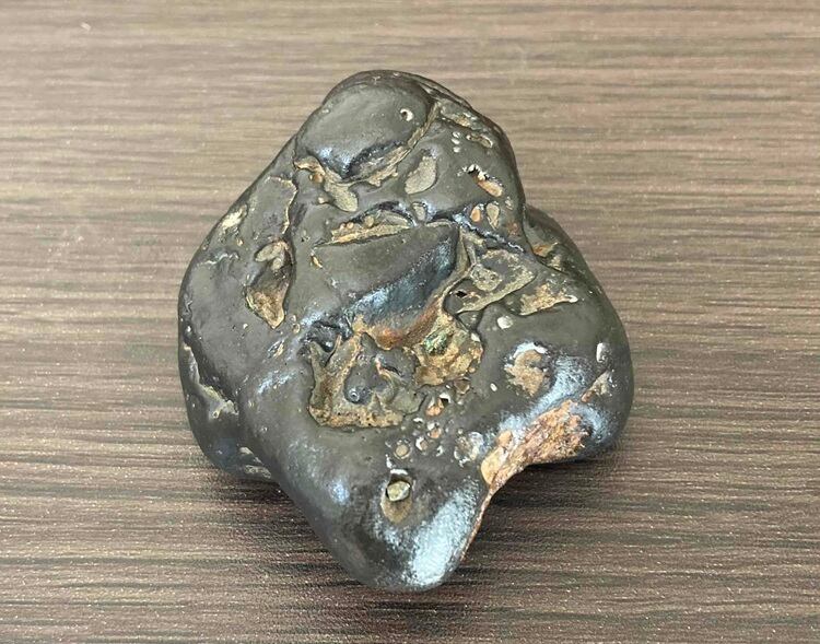 表面には隕石特有の溶融痕や金属的な質感が残り、手に取ると重みと冷たさが伝わります。