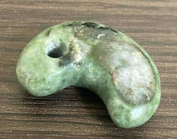 阿波の地に残る、古代の勾玉文化を思わせる素朴な勾玉。神話の時代、勾玉は権威を示す装身具ではなく、人と神、自然と人を結ぶ「かたち」として大切にされてきました。