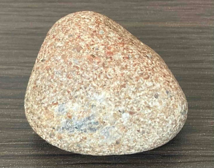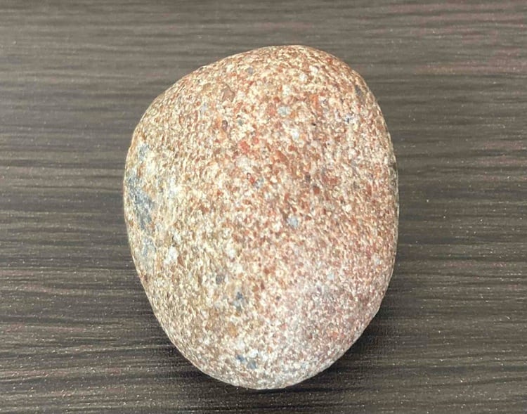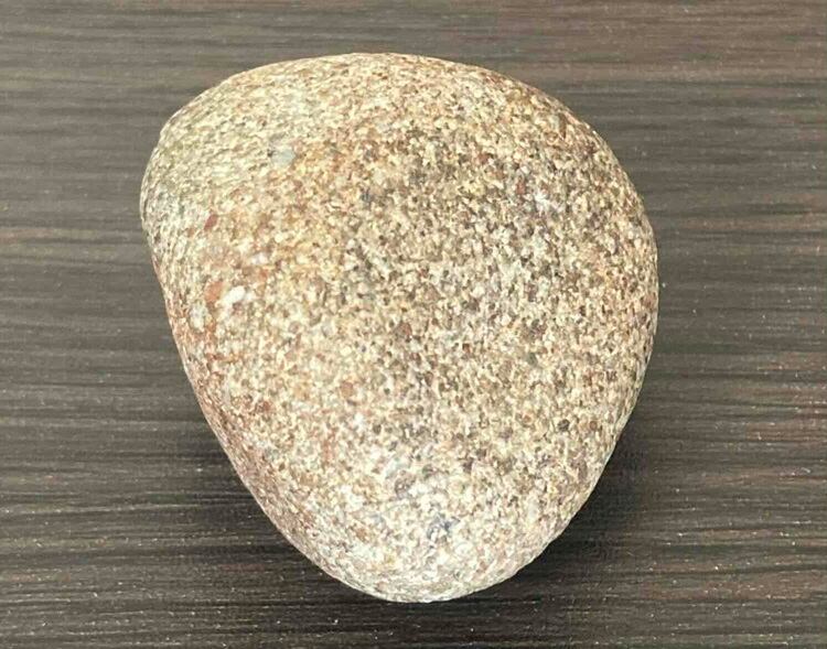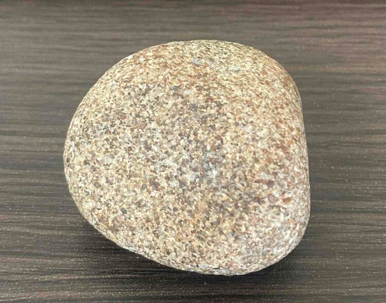 本品は、自然の川によって長い年月をかけて磨かれた天然の原石です。赤褐色の石質の中に石英質の部分が見られ、金鉱脈の母岩として知られる石英系岩石の特徴を持っています。