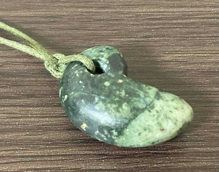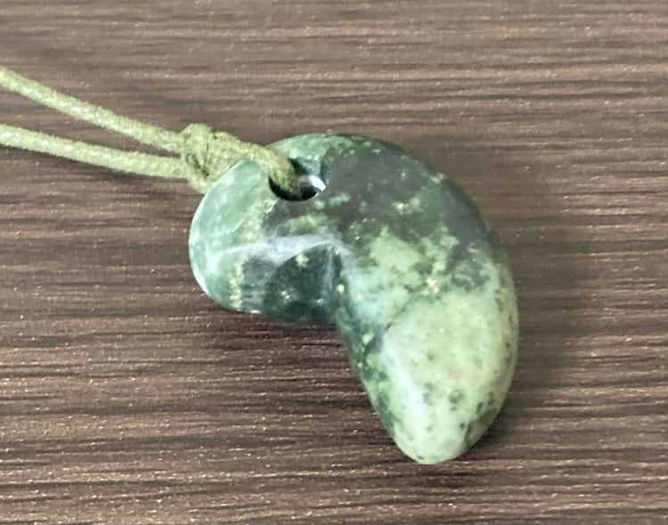 お買い得!98,000円!阿波翡翠 勾玉ペンダント|深緑と白翠が織りなす一点物!