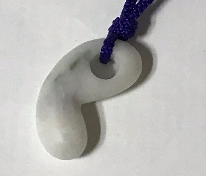 商品名:「翡翠屋伝次郎」阿波翡翠ハート型勾玉(白系コランダム入り)