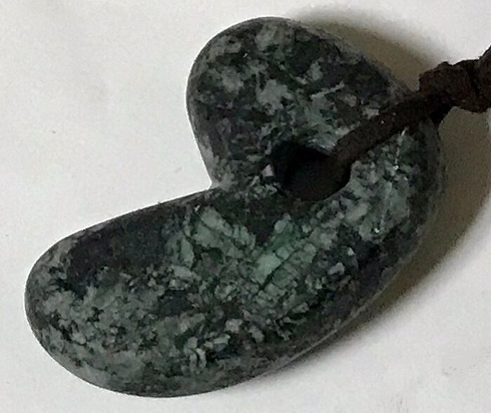 商品名:「翡翠屋伝次郎」阿波翡翠ハート型勾玉(モザイク黒・緑系)