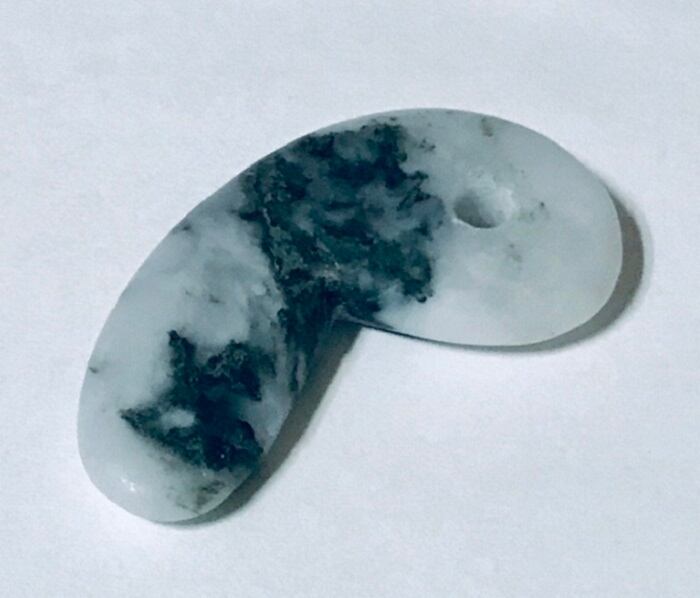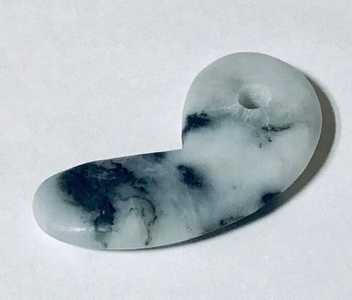 商品名:「翡翠屋伝次郎」阿波翡翠ハート型勾玉(白・ろうかん質系)