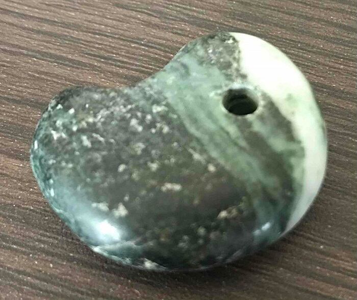 ハート型勾玉作家「翡翠屋伝次郎」が、作成した「天照大御神秘宝」白・濃緑系翡翠勾玉!