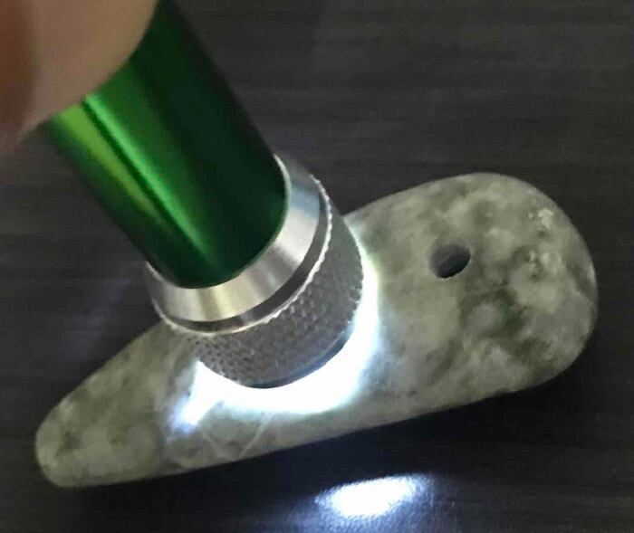 ハート型勾玉作家「翡翠屋伝次郎」が、丹精を込めて創作した灰・薄緑大型勾玉!