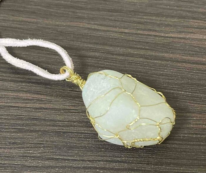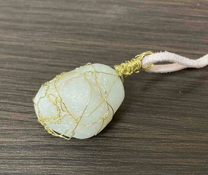 今回、紹介するワイヤージュエリーの原石は純白翡翠。ワイヤー素材は銅にコーテングしたものを使用しております。