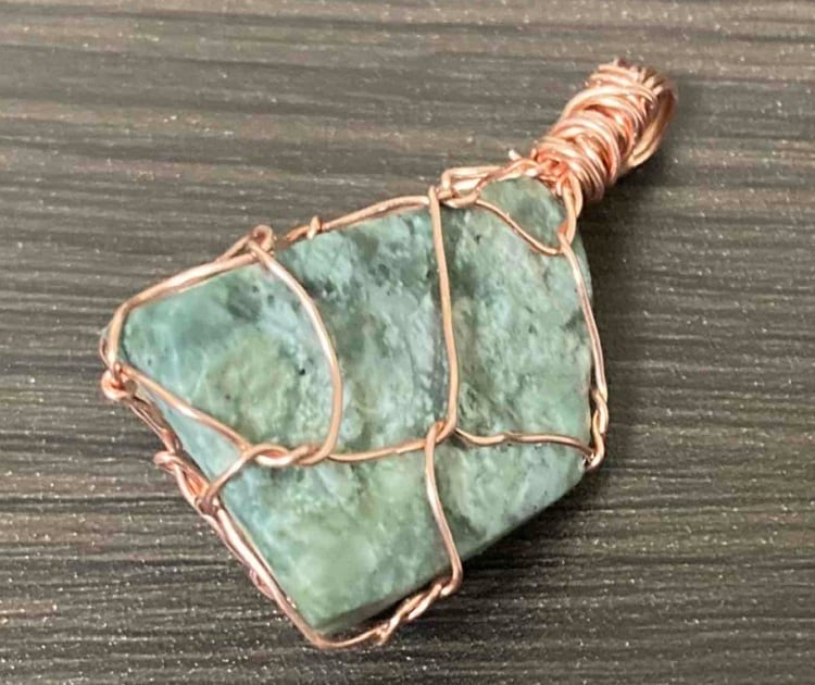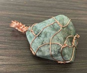今回、紹介するワイヤージュエリーの原石は緑翡翠。ワイヤー素材は銅にコーテングしたものを使用しております。