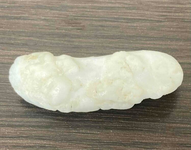 今回は、こぶ(蒼玉)と思われる白翡翠ですが、更にろうかんを含む美しい原石です。こぶのある原石は、翡翠の中でも希少な原石です。