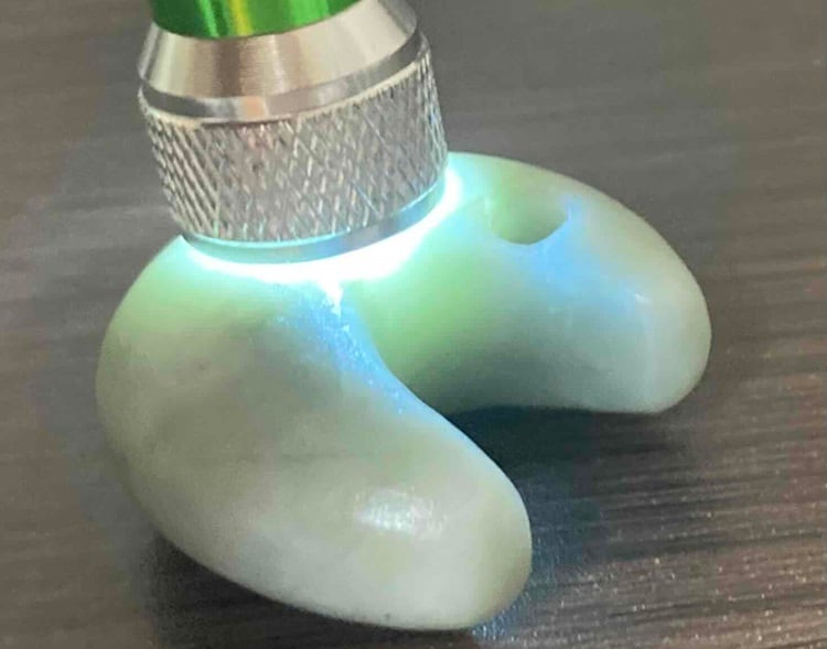 今回、紹介する原石は絶品の美しい天然ブルーアゲート勾玉です。「透過度」も高く「高品質」の宝石となります。「勾玉作家伝次郎」によるこだわりの勾玉です。