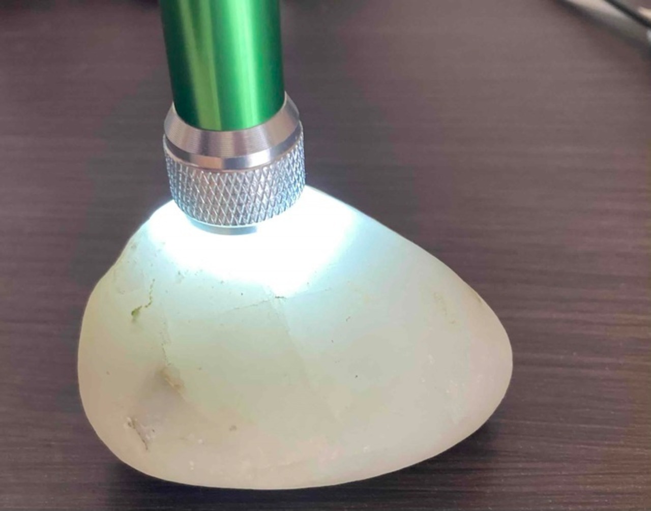 今回、紹介する原石は阿波天然白翡翠(ジェイド)です。透過度の高い希少な原石です。大きなクラックもなく置物にしても美しい原石です。