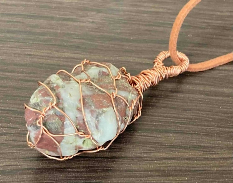 今回、紹介する「ワイヤージュエリー」の原石は「ジャスパー」の中に水晶を含む珍しい原石で、主に魔除けとして古代からいい伝えられている「赤い色の原石」です。