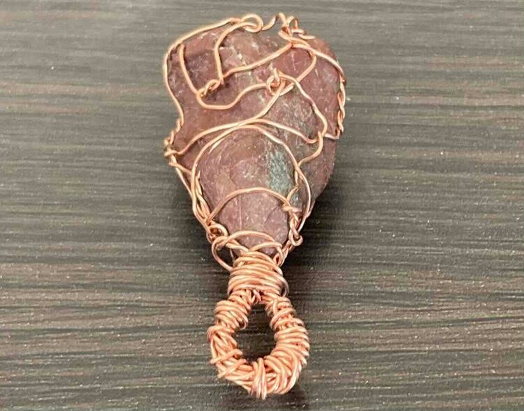 今回、紹介する「ワイヤージュエリー」の原石は「ジャスパー」の中に水晶を含む珍しい原石で、主に魔除けとして古代からいい伝えられている「赤い色の原石」です。