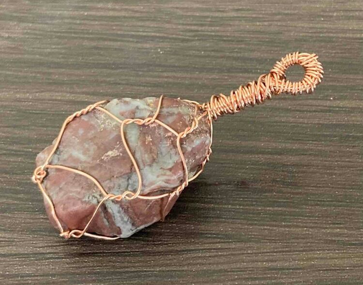 今回、紹介する「ワイヤージュエリー」の原石は「ジャスパー」の中に水晶を含む珍しい原石で、主に魔除けとして古代からいい伝えられている「赤い色の原石」です。