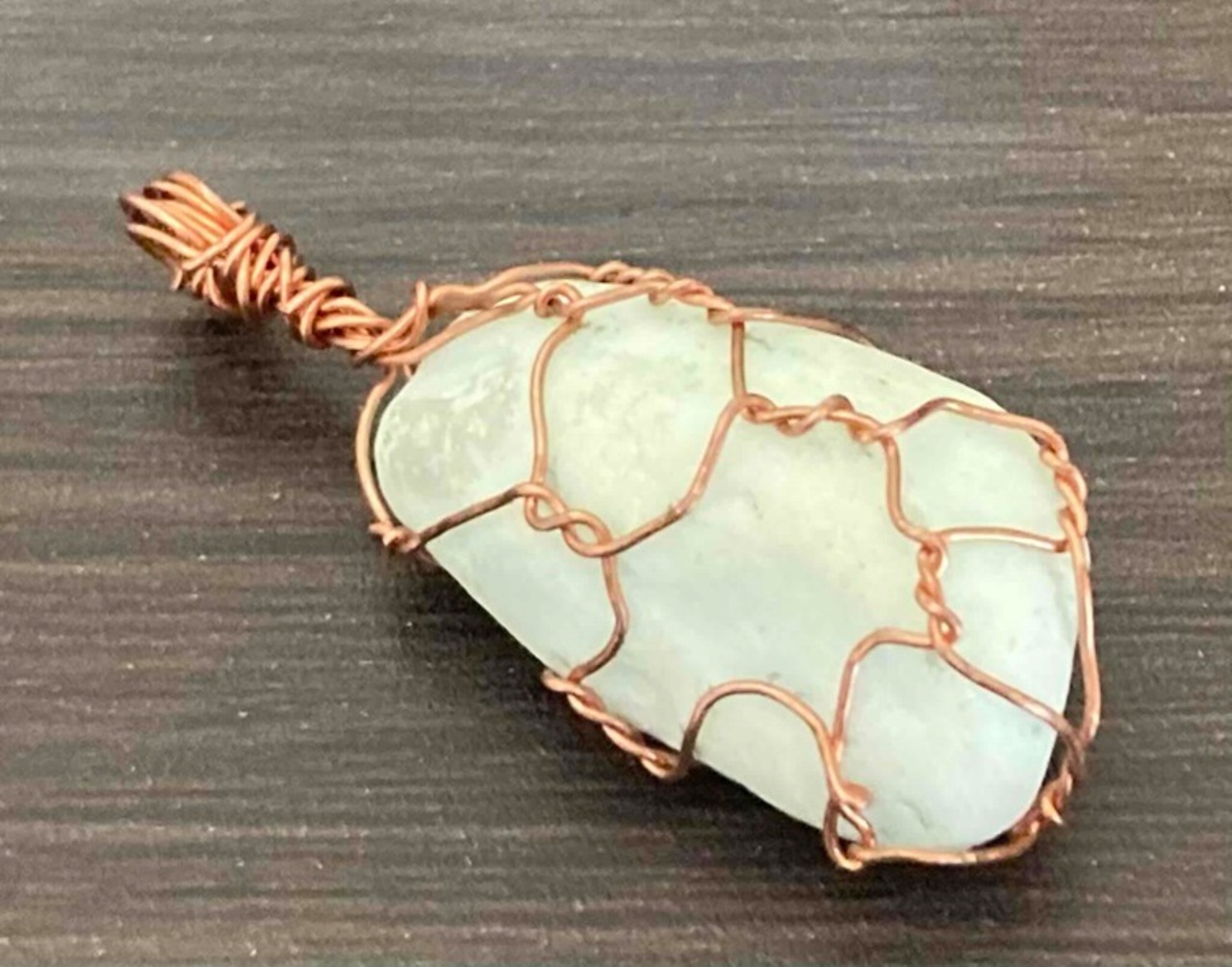 「阿波翡翠」特有の薄緑系の「翡翠」は、魔除けやパワーストーンとして人気があります。あなたも「翡翠のパワー」に守ってもらいませんか!ワイヤーの素材は銅線を使用しております。